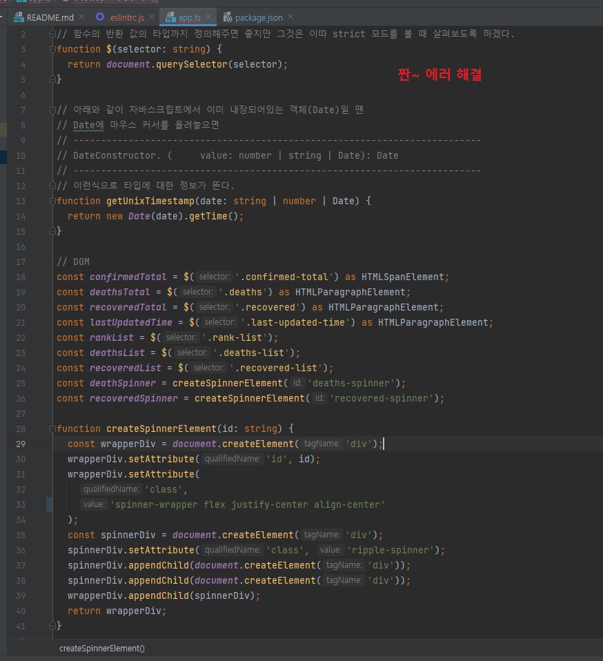 DefinitelyTyped에서@types관련 라이브러리를 찾아 설치한다. (아직axios,chart쪽 에러들을 못잡은 상태이다.) - 만약, 타입을 정하기 어려운 곳이 있으면 명시적으로라도