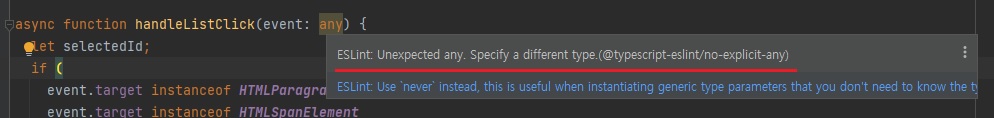 any선언하기- 프로젝트 테스트 코드가 통과하는지 확인한다.