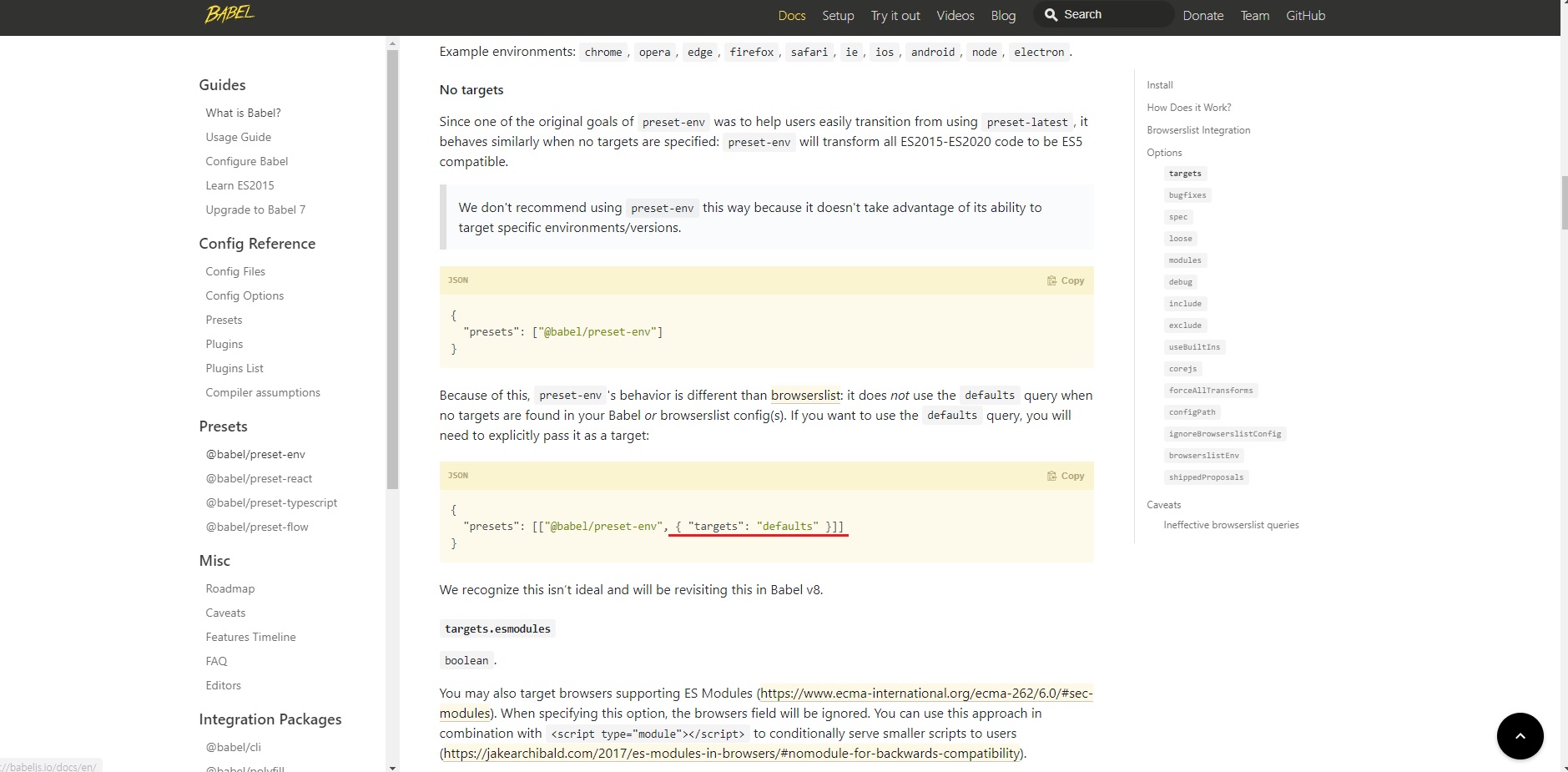 바벨 같은 경우에는 플러그인의 집합에 더해 옵션들까지 집합해놓은 것으로써 특정 값들의 집합이라고 보시면 될 것 같다.