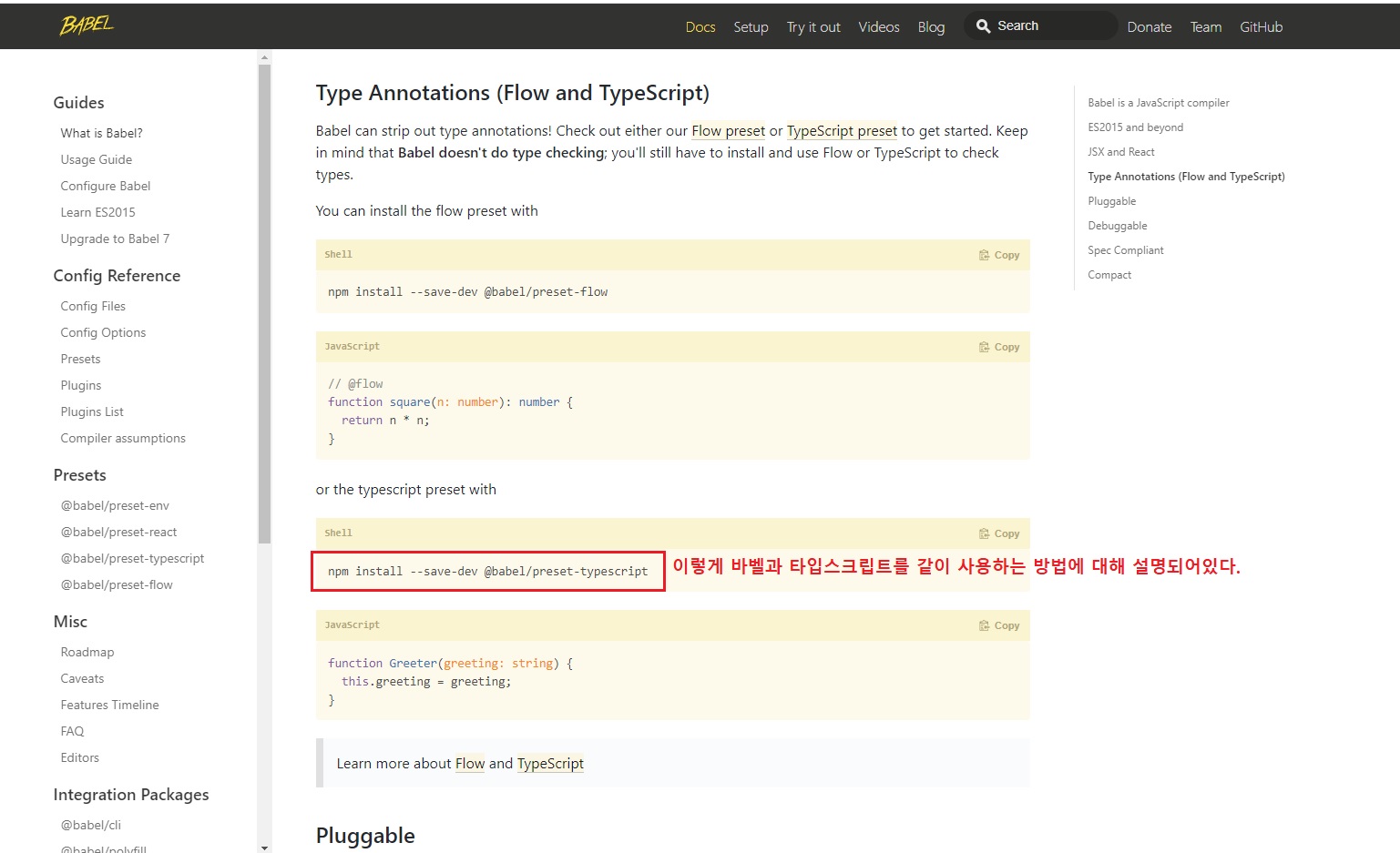 @babel/core: 바벨 기본 코어@babel/preset-env,@babel/preset-typescript: 타입스크립트 컴파일을 위한preset