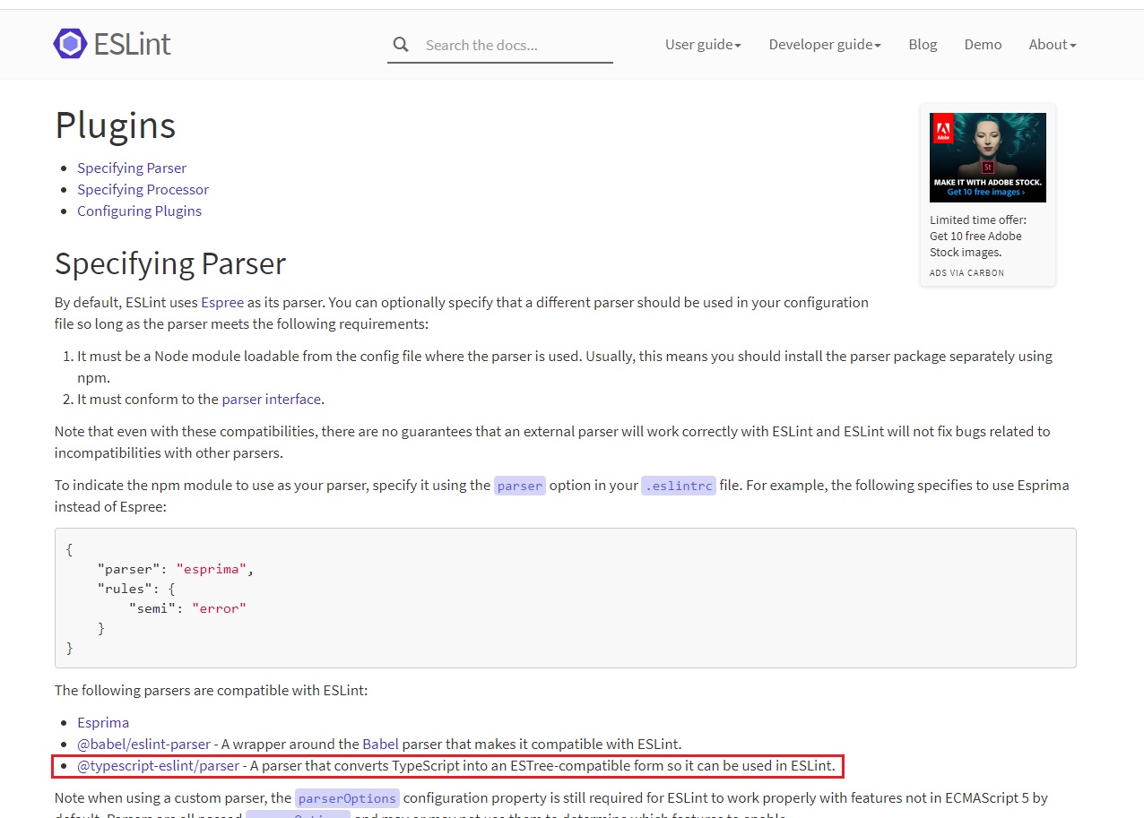 저희가 프로젝트에서 사용하고있는 이런 옵션들은 타입스크립트를 돌리기위해서 ESLint나 바벨에서 가이드해준 플러그인과 설정들로 구성이된거기 때문에, 아 이런 것들로 설정했구나 라고 보시면된다.