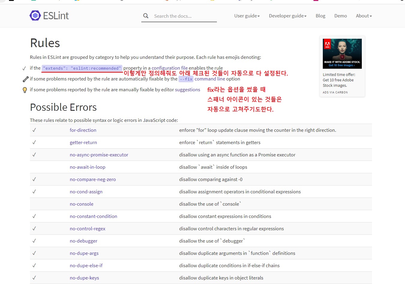 fix라는 옵션을 쓰면 자동으로 고쳐주는 것까지 어느정도 가능하기 때문에 그런 것들에 대해 쭉 살펴보시면 좋을 거 같다.