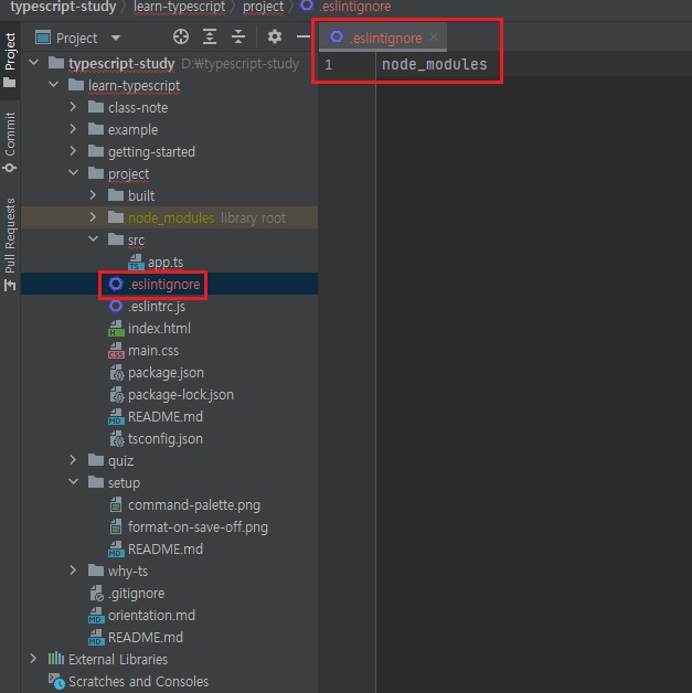 - 프로젝트 폴더 바로 아래에 ESLint 설정 파일 추가