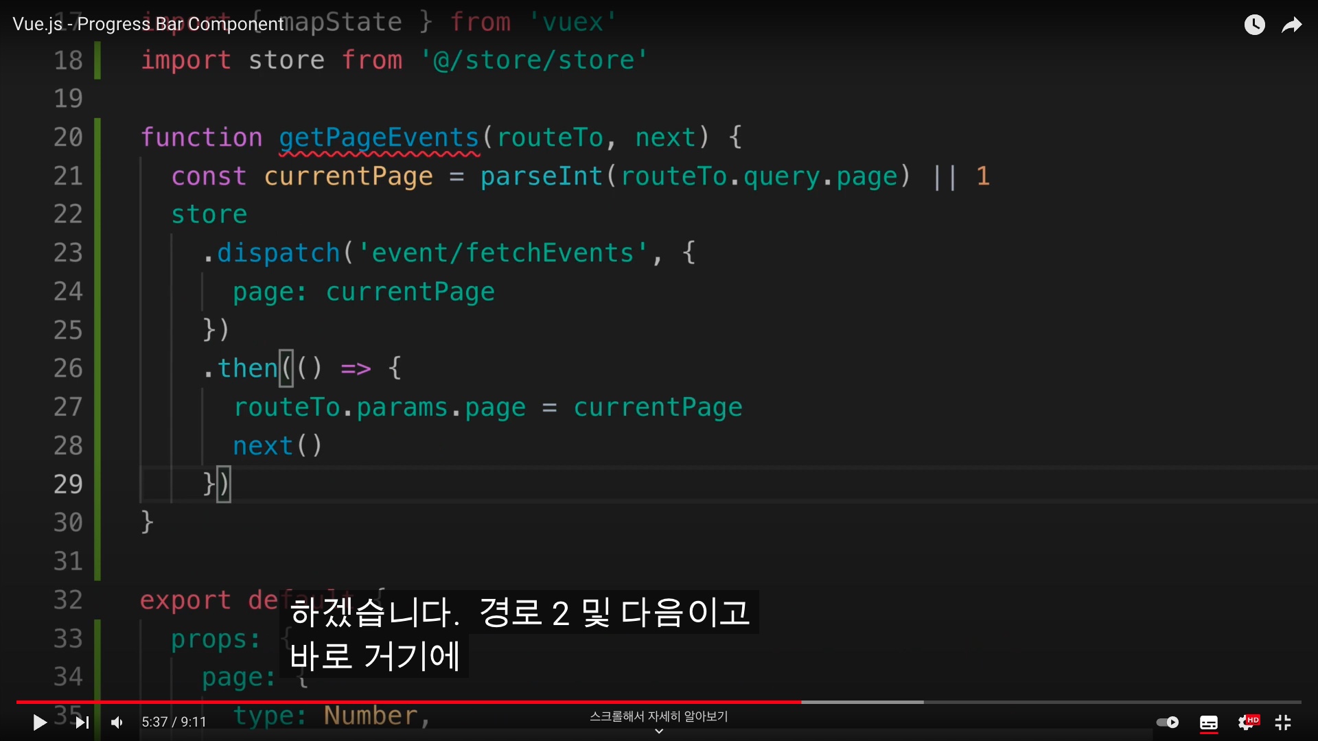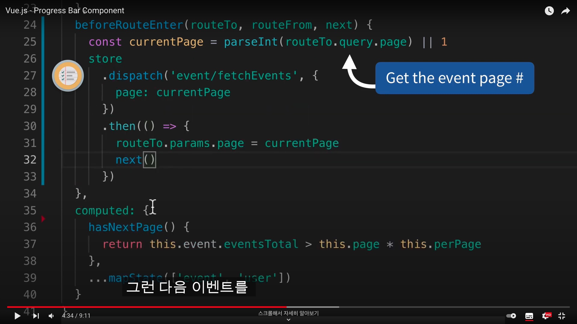 beforeRouteEnter와beforeRouteUpdate를 사용해야합니다. UsebeforeRouteEnterandbeforeRouteUpdatein EventList. currentPageprops를 전달하기 위해서 router.js를 수정해야합니다. We need to modify the router.js to send in thecurrentPageas a prop.