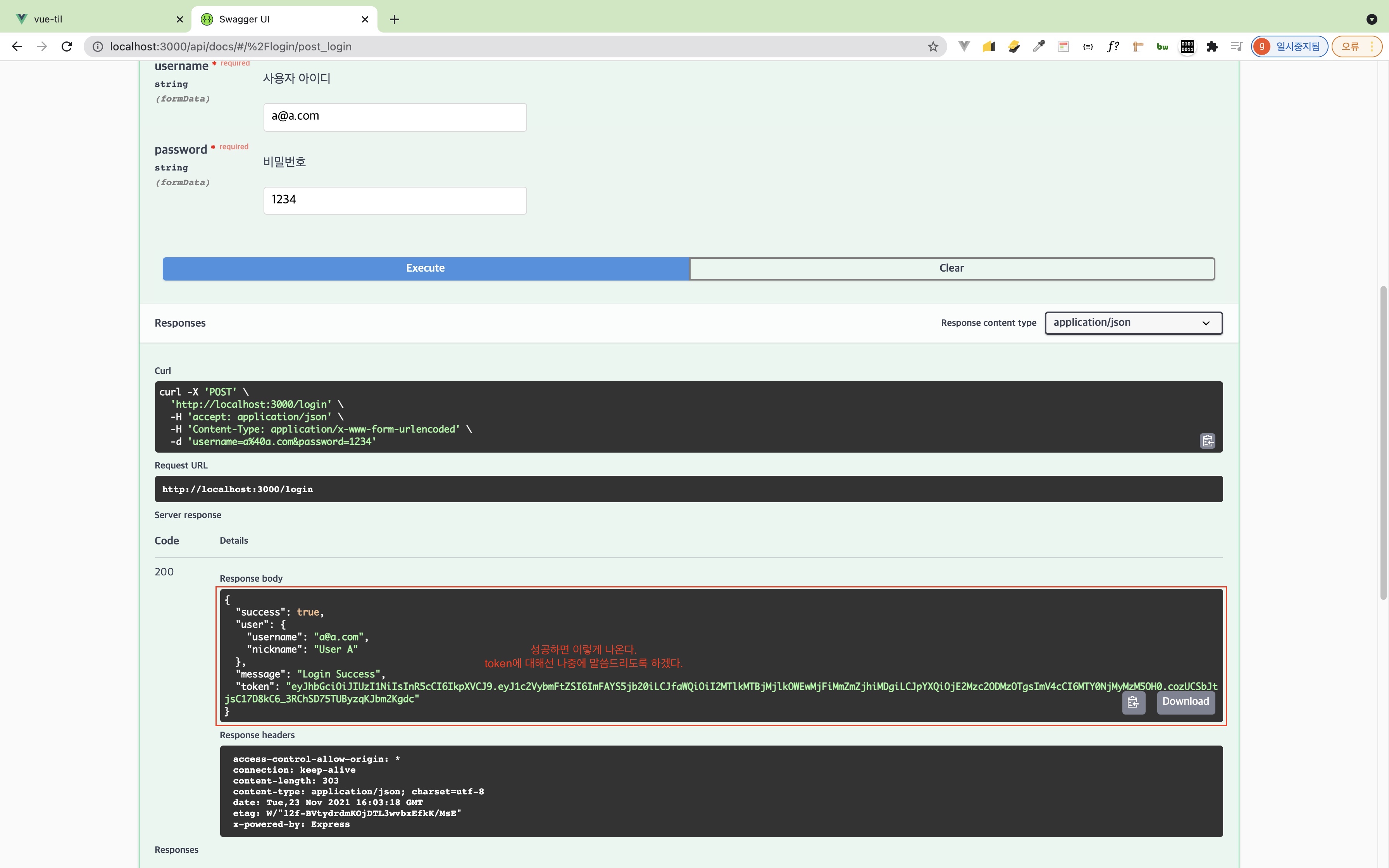다음 시간에 token을 사용해 로그인 관련 처리를 해보겠습니다.