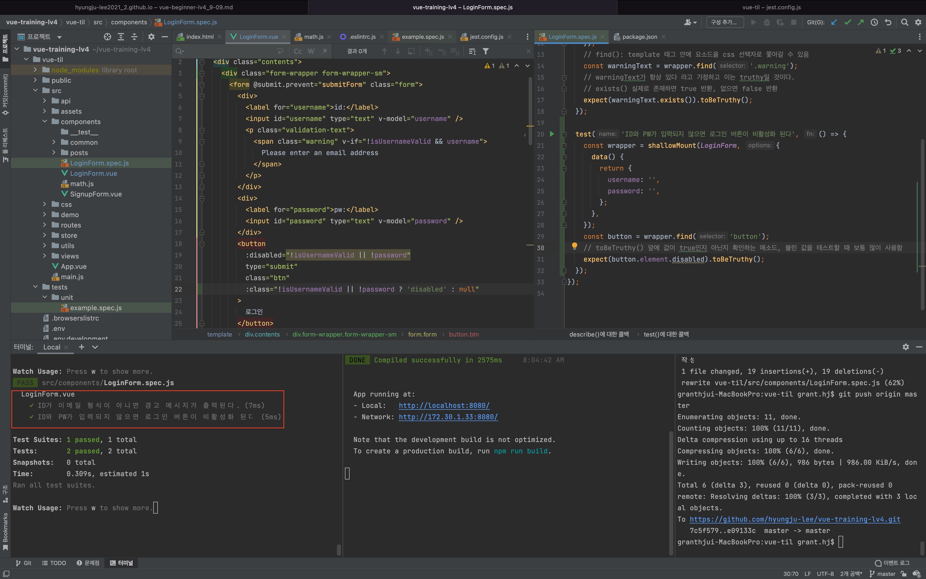 src/components/LoginForm.vue파일에서 테스트를 해보자.login테스트!