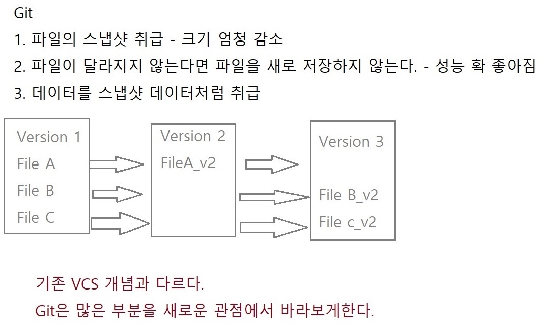 기존 VCS와 GIt의 차이