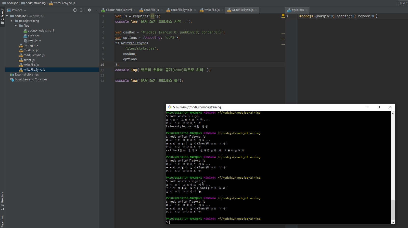 console.log('코드의 흐름이 동기(Sync)적으로 처리!');
