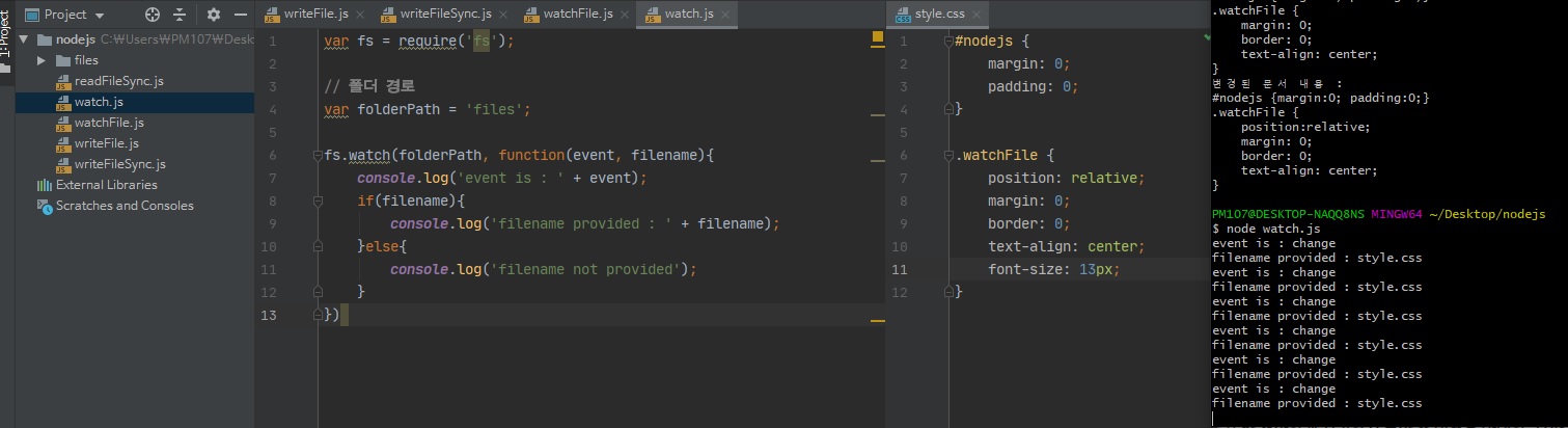 그리고 리스너 함수의 filename 매개변수 값은 디렉터리 안의 각 파일을 가리킵니다.