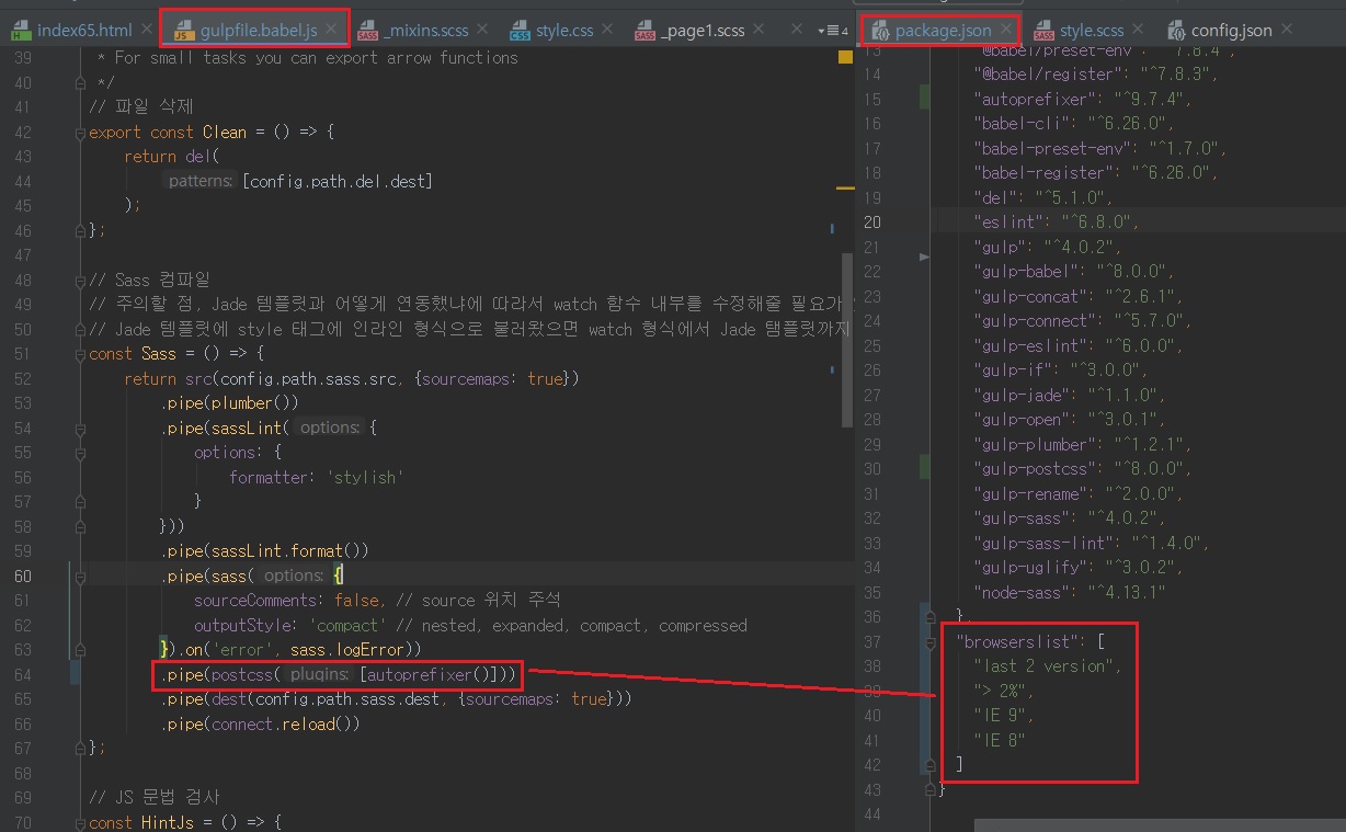 위 사이트 들어가면 autoprefixer 관련 환경설정 하는 방법이 나와있습니다.
